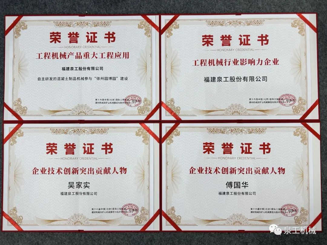 展會期間,泉工股份還獲得工程機械行業影響力企業、工程機械產品重大工程應用、企業技術創新突出貢獻人物等榮譽,標志著泉工股份在工程機械行業做出的努力和成績,得到了行業的充分認可和高度評價。