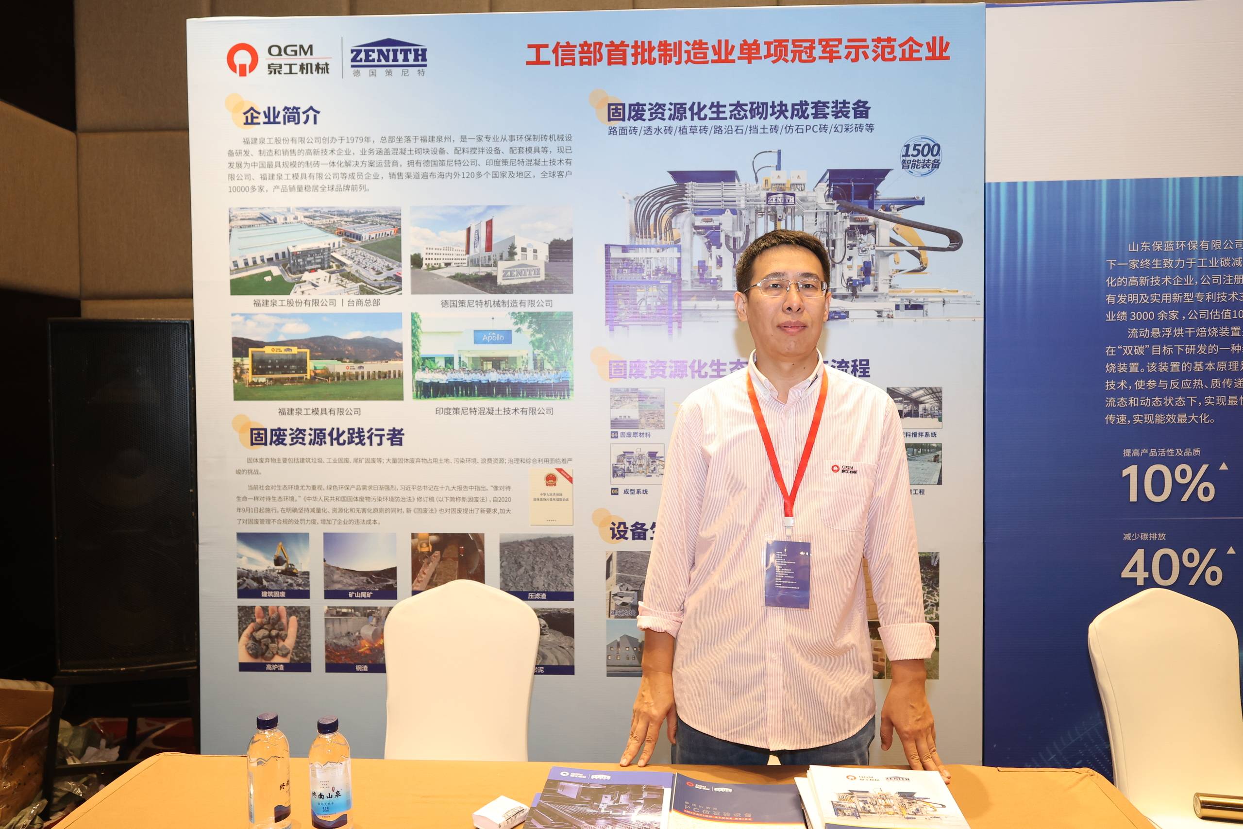 泉工股份華北區域經理陽海東在現場展示了目前最新的固廢制磚科技成果,吸引了大量的客戶前來咨詢洽談。