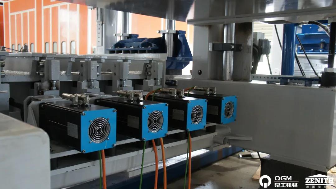 策尼特ZN1500C型全自動砌塊成型機生產線是泉工股份研發的一款高端智能機型,該機型以嚴謹、簡潔、對標國際水準著稱,該設備采用策尼特公司發明的四軸振動臺技術,通過變碼器的信號反饋,控制4個偏心軸的相對夾角和轉速,實現高效運轉時,激振力的快速改變,實現高動態,高響應的振動模式,在保證磚的強度及整體高度的前提下,提高制磚速度。