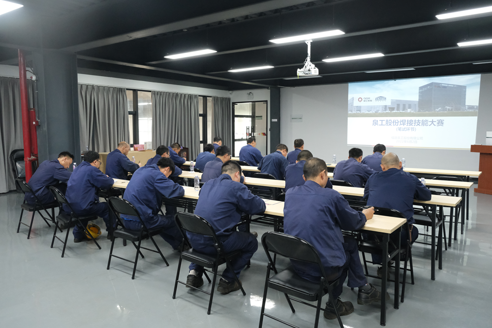 在B區(qū)三樓會議室,全體參賽焊工參加了焊接理論考試??碱}囊括單選題、判斷題和簡答題等,題目注重實(shí)際強(qiáng)調(diào)應(yīng)用,副總經(jīng)理吳家實(shí)表示,萬丈高樓平地起,理論知識就是地基,只有地基打的牢固,大廈才能建得穩(wěn)。希望通過理論知識的考核充分了解每一位焊工的基礎(chǔ)水平及理論與實(shí)際相結(jié)合的能力。