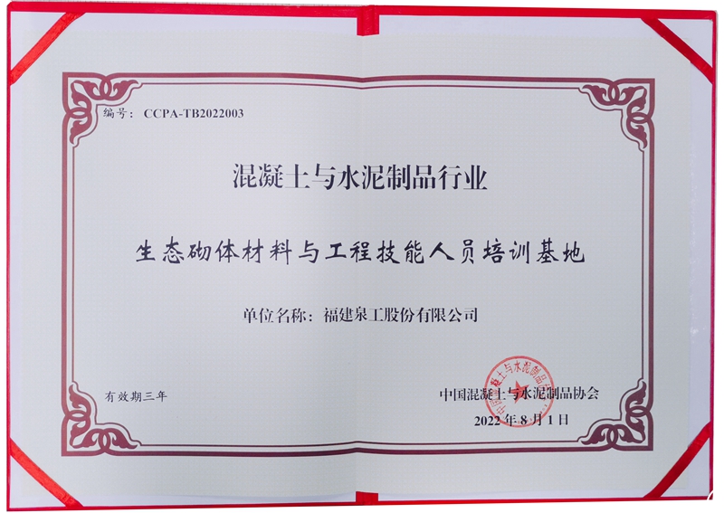 展會期間,泉工股份被授予“生態砌塊材料與工程技能人員培訓基地”,協調推進混凝土工程技術創新,打造人才資源集聚、組織運行開放、治理結構多元的綜合性水泥制品行業技能人員。